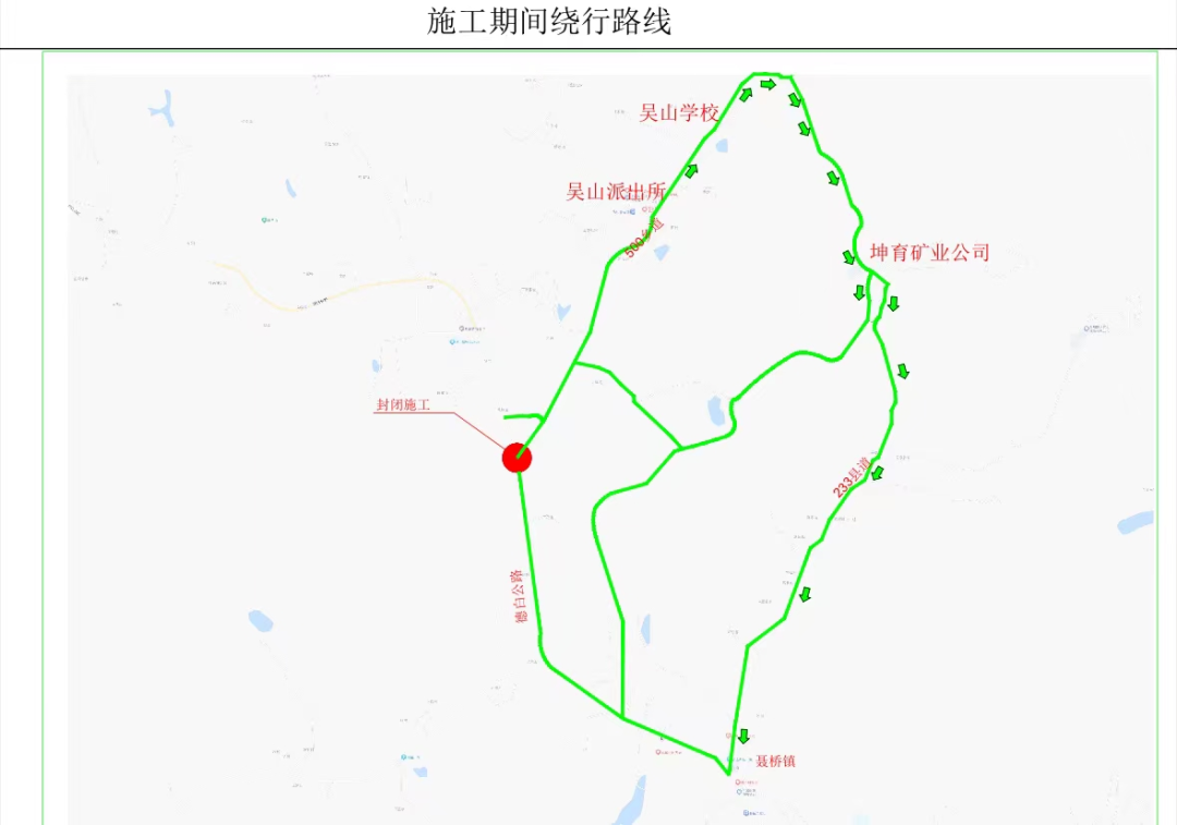 1、通往吴山集镇方向的货车,请走坤育公路-刘家山公路-彭山锡矿-田五公路绕行;