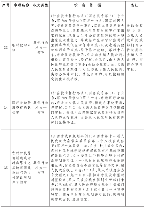 江西省乡镇(街道)行政权力指导目录(2025年版)