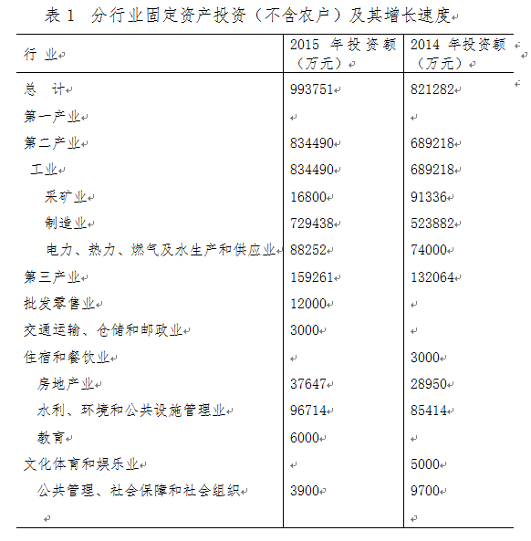 表1 分行业固定资产投资(不含农户)及其增长速度