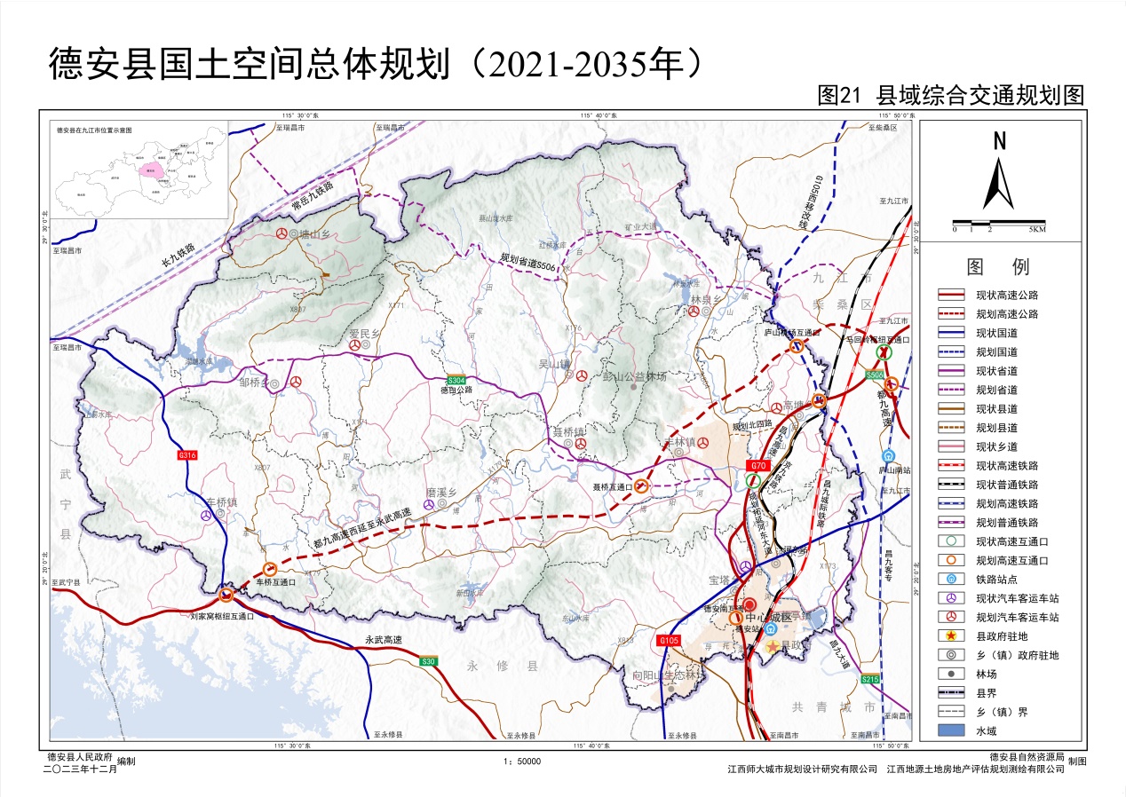高速公路通道建设:保留现状福银高速,规划新建德武高速,新增车桥互通、聂桥互通、庐山机场互通、德安南互通高速出入口。