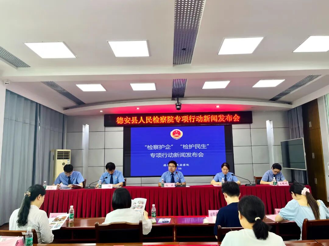 6月20日,德安县检察院举办“检察护企”“检护民生”专项行动新闻发布会,通报专项行动开展情况及取得的成效。