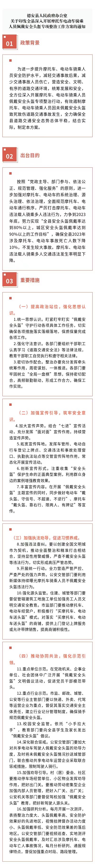【图文解读】《全县深入开展摩托车电动车骑乘人员佩戴安全头盔专项整治工作方案》