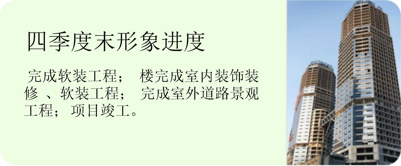 四季度末进度 对项目试运行出现的缺陷或问题进行修复及运行,全面完成项目全部建设内容。 |