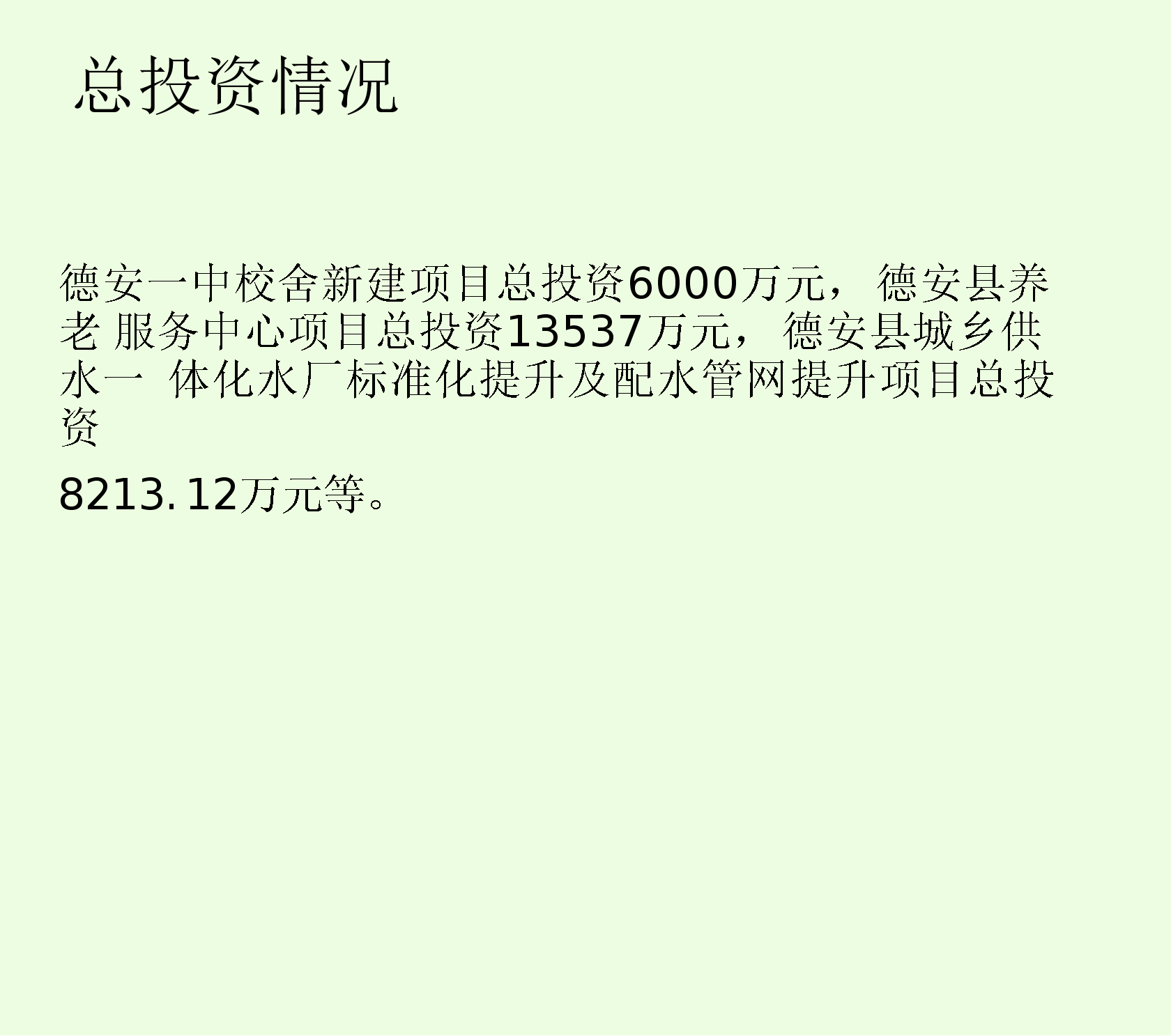 养老服务类 包括德安县养老服务中心项目、德安县社区养老扶幼设施改造项目,致力于提升养老扶幼服务水平。