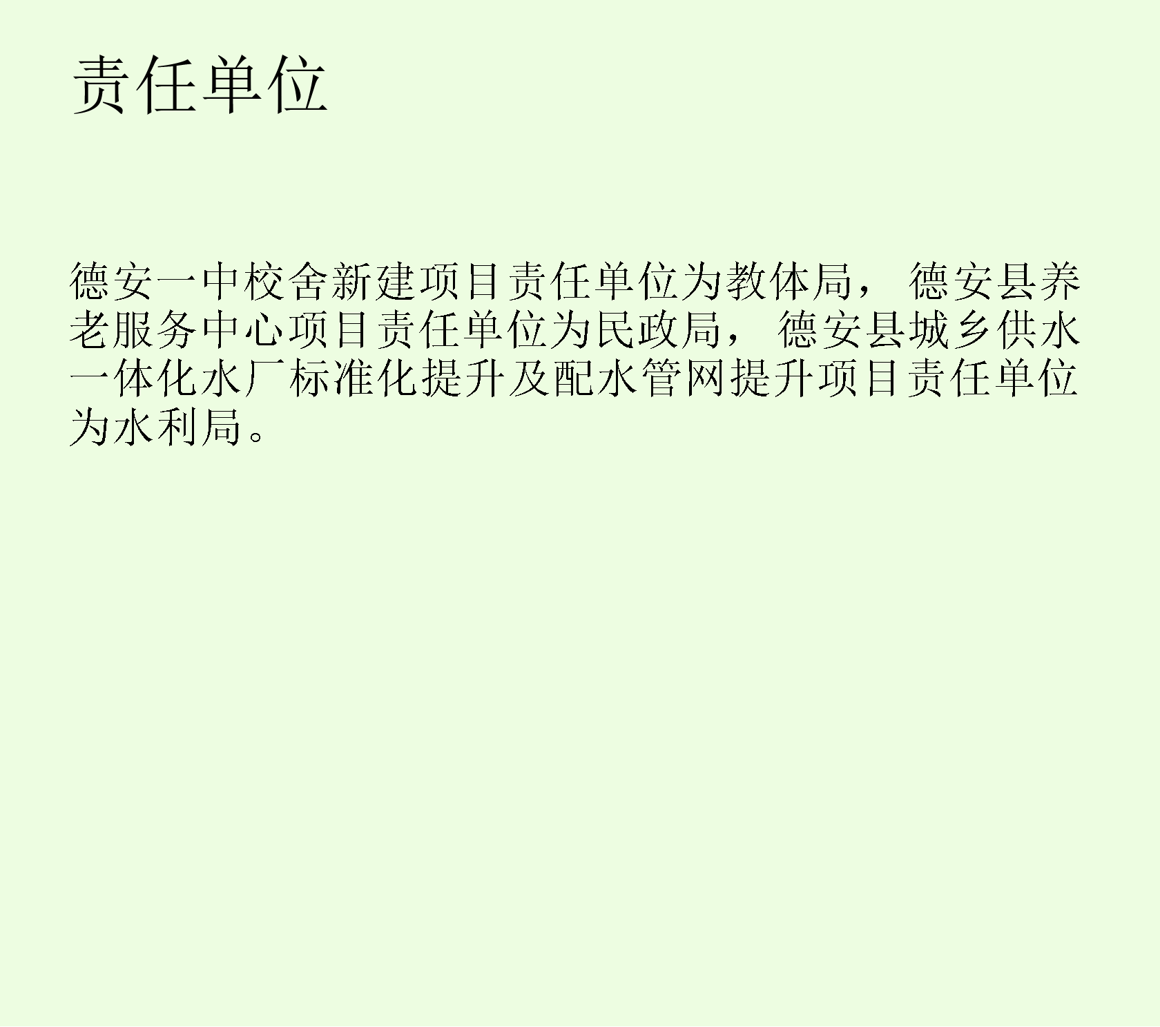 项目的责任单位为水利局,负责项目的组织实施、协调推进和监督管理等工作。 |