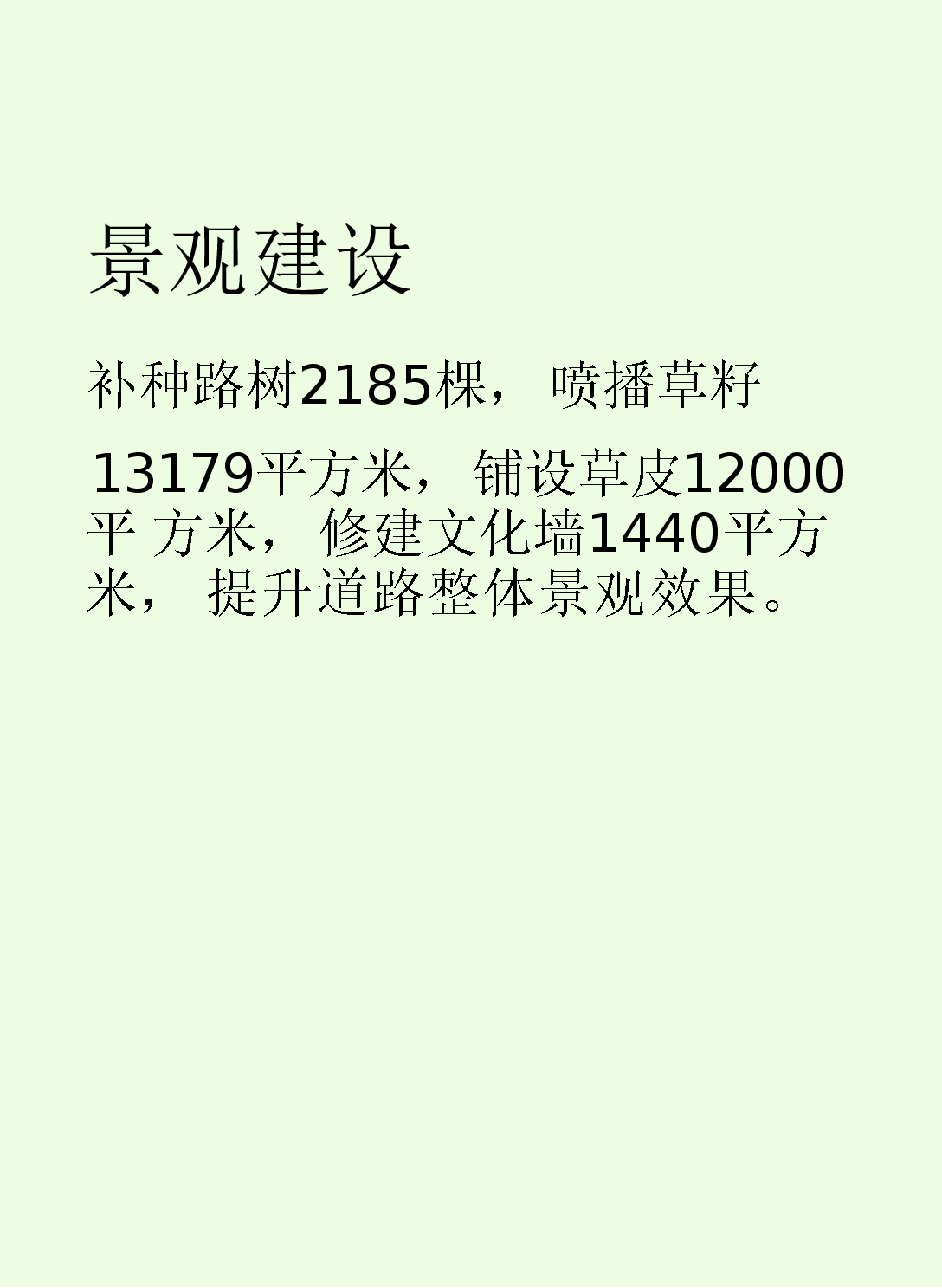 一季度末进度 完成文化墙、路宅分离及喷播草籽等项目,为后续工程奠定基础。 |