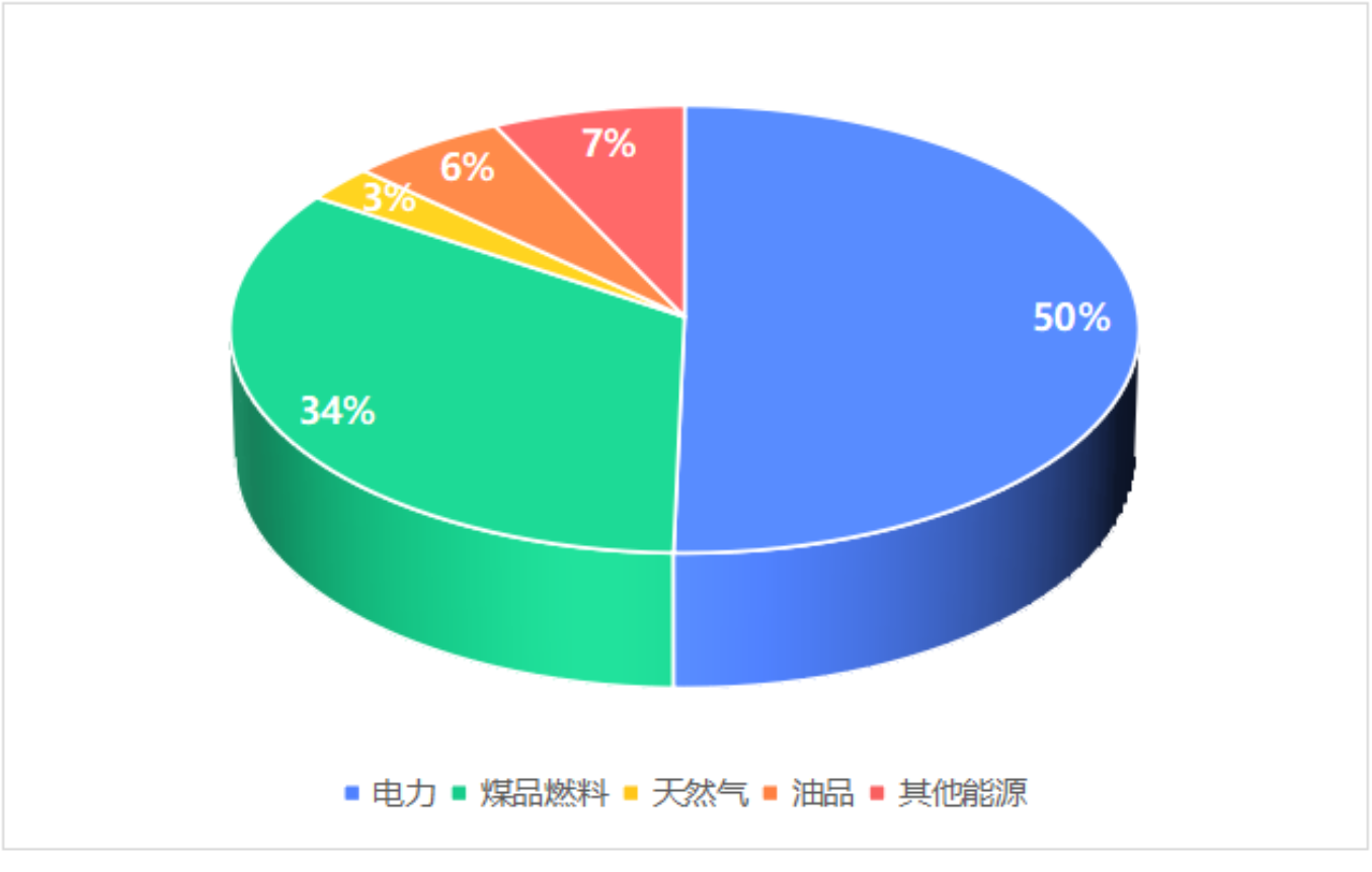 从能源消费种类看,能源结构以电力为主,一次电力消费3.12万tce,电力净调入消费29.24万tce,电力合计消费32.36万tce,占全社会综合能源消费的50.36%。其次是煤品燃料消费为21.79万tce,占全社会综合能源消费的33.92%;天然气消费1.68万tce,油品消费3.78万tce、其他能源消费4.64万tce,分别占全社会综合能源消费的2.61%、5.89%、7.23%。